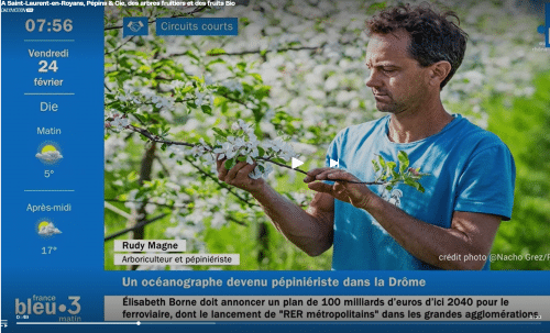 Je suis producteur d’arbres fruitiers (pépiniériste) et producteur de fruits en agriculture biologique dans la Drôme sur Saint-Laurent-en-Royans dans le Royans Vercors. J’ai à cœur de vous proposer des fruits de très bonnes qualités gustatives  et peu sensibles aux maladies.